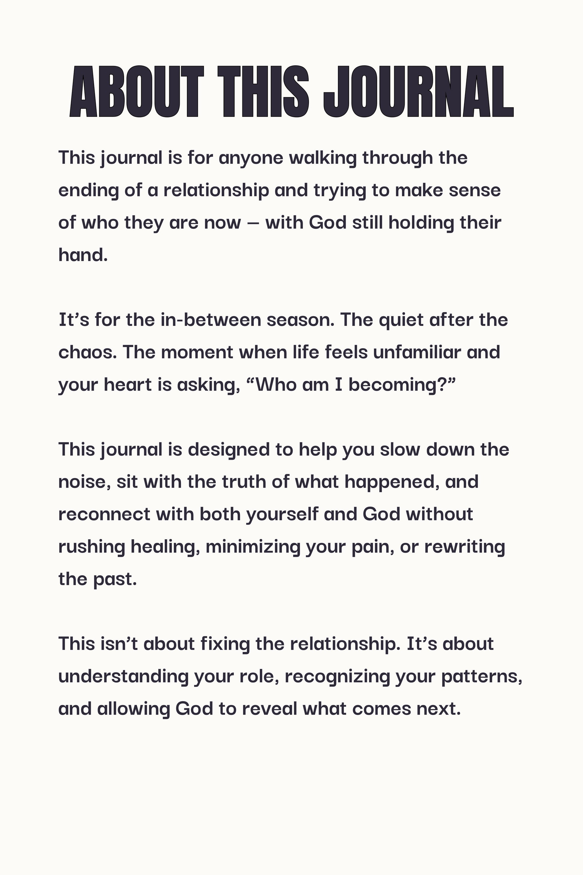 This journal was created for the in-between season: the space after the ending but before clarity returns. It’s for the moments when emotions feel heavy, thoughts feel scattered, and healing feels uncertain.